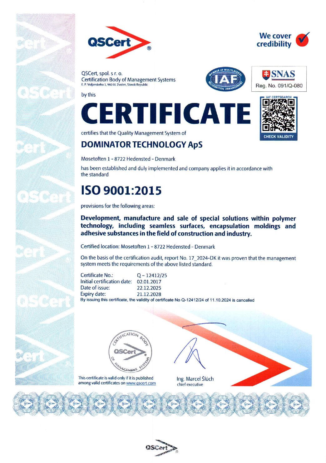 Vores udvikling og produktionsmetoder er certificeret i henhold til gældende ISO 9001:2015 norm.