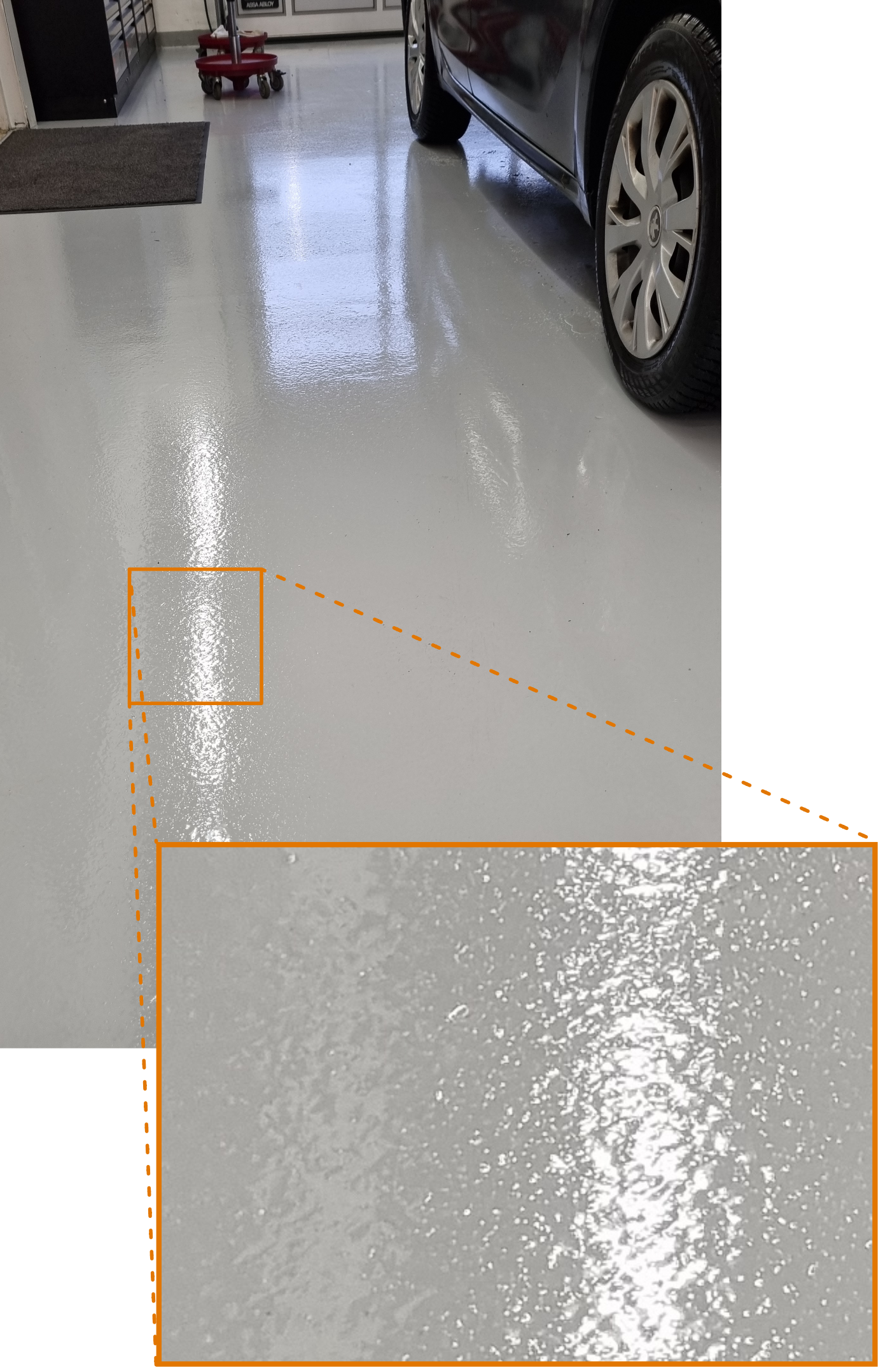 Opfriskning af eksisterende gulv i autoværksted hos Allan Hansen Autoværksted A/S Daugård: